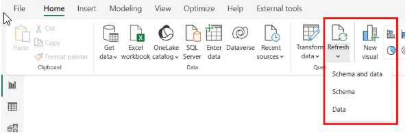 Refreshing everything used to take time. Now you can refresh just the data or just the structure of your report.