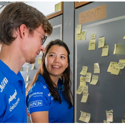 From then on, the Agoria Solar Team scheduled weekly meetings every Monday morning. The complete team gathers at its headquarters for a “Sprint Planning Meeting”. During these weekly meetings, the deliverables that have the highest priority are discussed and put on the “Sprint Backlog”. The “Sprint Backlog” is a separate area on the wall, to visualize the priorities for the upcoming week. Every time a task is executed, a team member moves the Post-it from “Sprint” to “Done”, to keep a good overview of the current tasks.