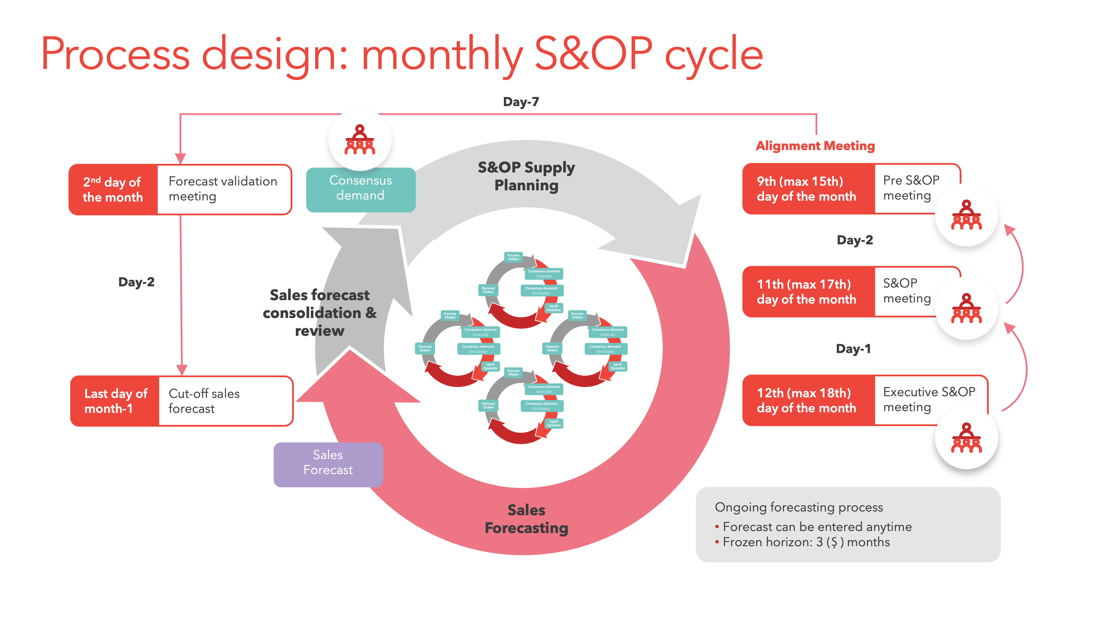 During our S&OP processes, we look at data differently. We analyse data at aggregated levels like product groups, customer segments, and regional or global scales, rather than examining individual orders. After S&OP, the planning cycle continues, with consensus demand integrated into operational processes.
