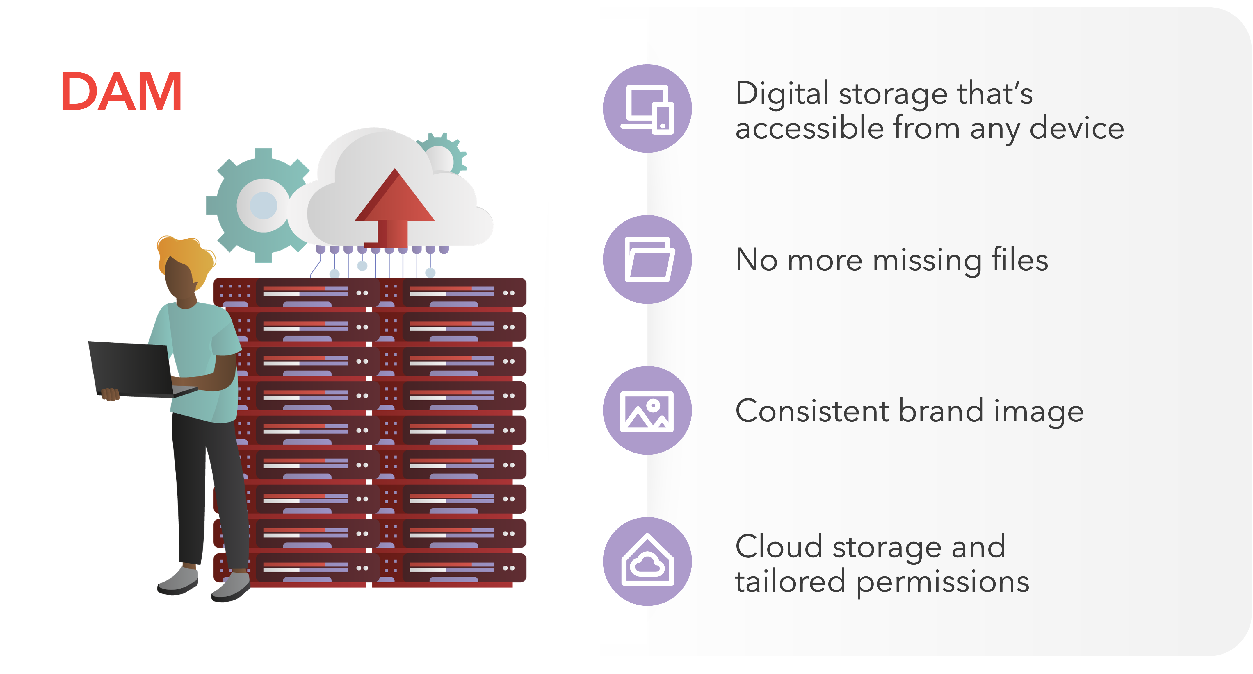 With a DAM solution however, businesses can ensure all their files are stored in one, central location, accessible to the relevant internal stakeholders.