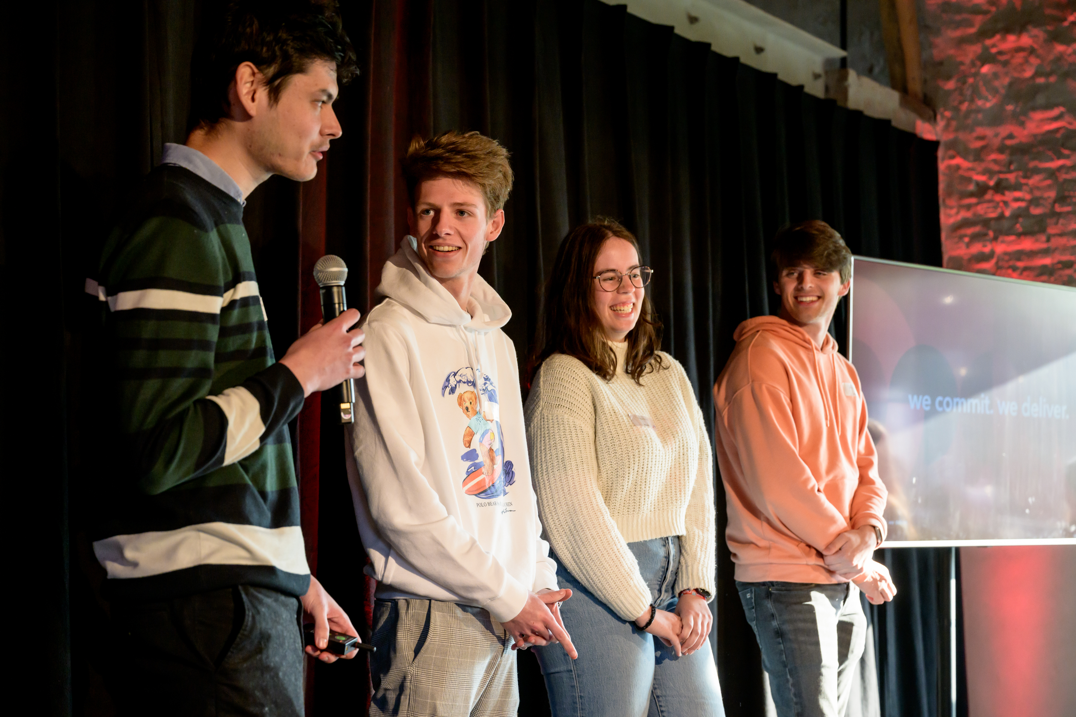 5 équipes signifie aussi 5 cas et tout comme dans les éditions précédentes, les sujets étaient également très variés. L'équipe Dance Hall a travaillé sur un outil permettant à Roularta de résumer des articles d'actualité complexes en quelques phrases, tandis que leurs voisins de l'équipe The Marquee ont imaginé un moyen permettant à Unilin de mesurer ses performances en matière de marketing numérique par rapport à ses concurrents. Les étudiants de l'équipe Klub C ont aidé notre équipe de recrutement à trouver un moyen de permettre aux gens de trouver plus rapidement un emploi qui leur convient, tandis que l'équipe Shelter a élaboré un cas pour que RMB attribue des espaces publicitaires en fonction du degré de durabilité des entreprises. L'équipe The Barn a enfin exploré comment Cora peut optimiser leur expérience d'achat hors ligne.