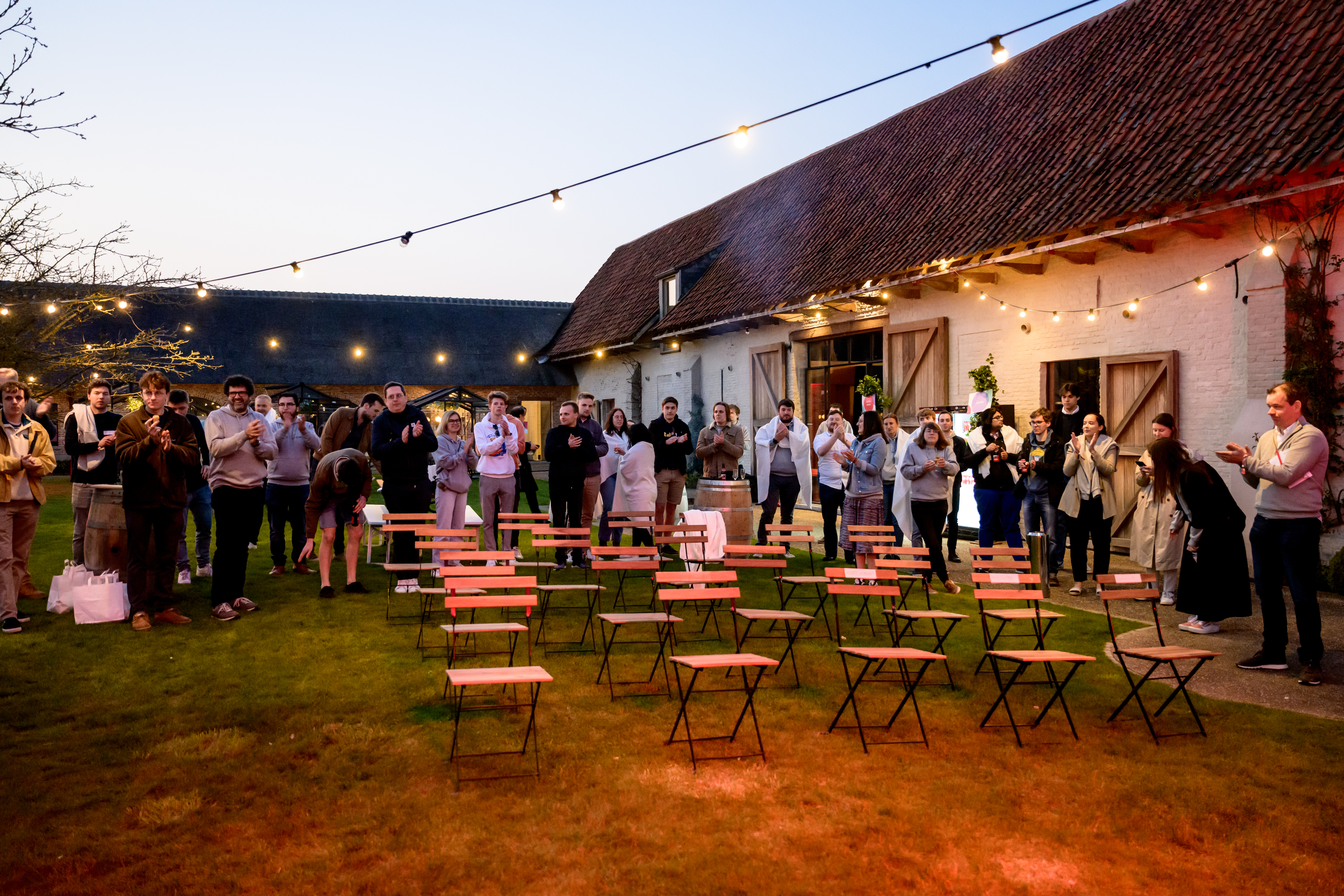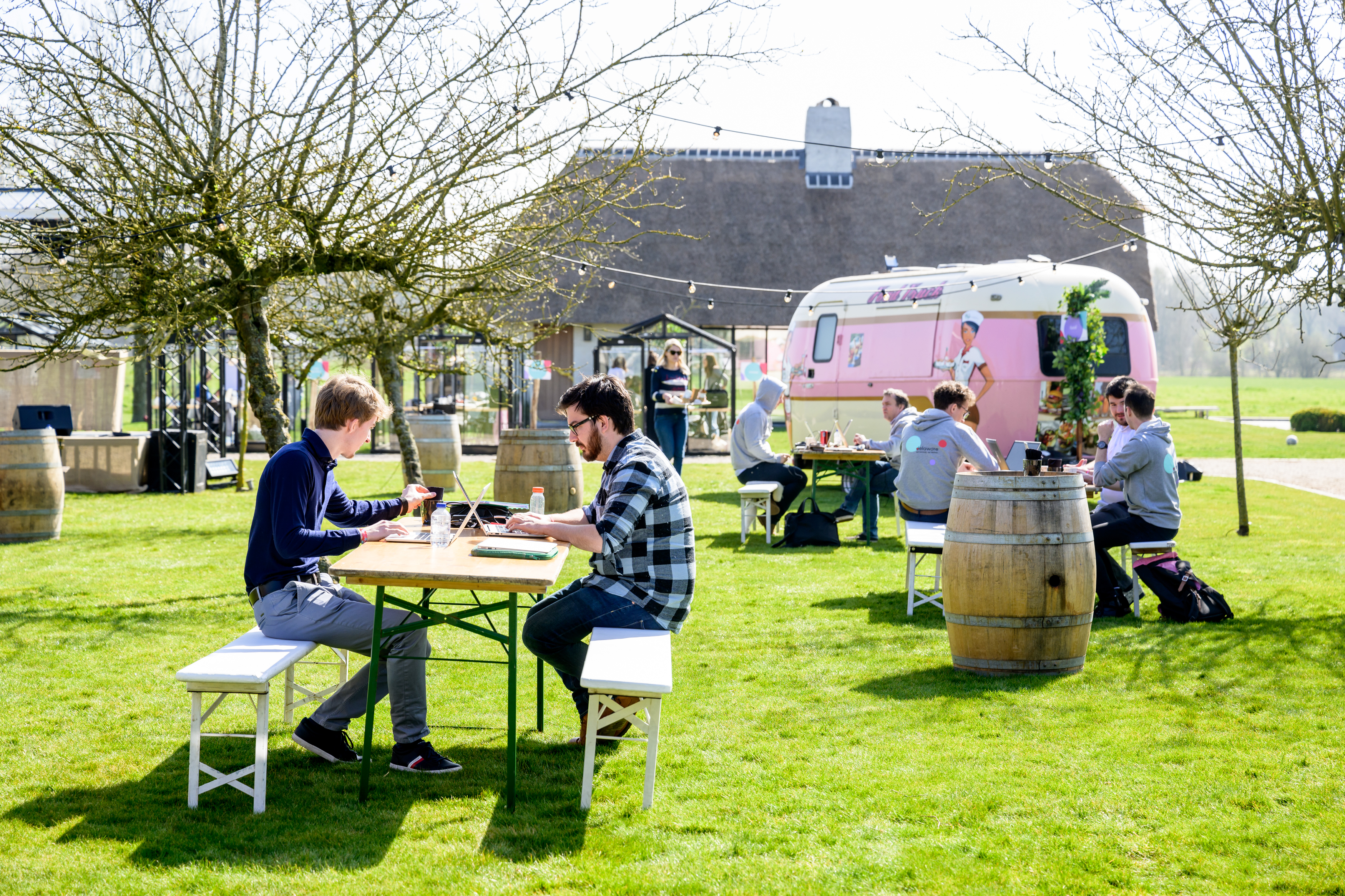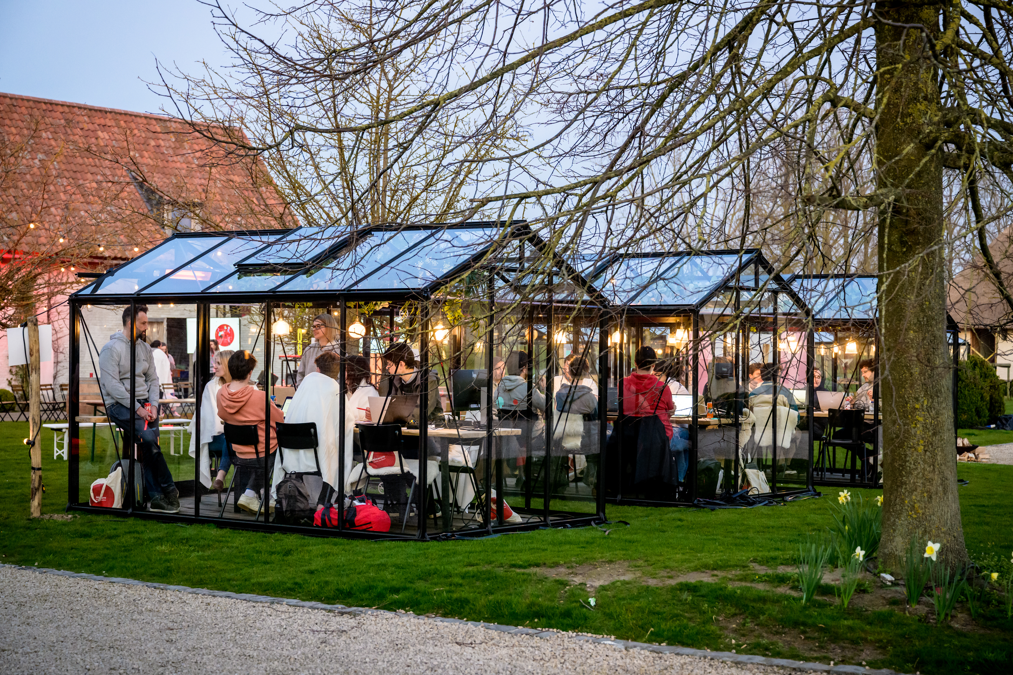 Jeudi après-midi, les coaches et les participants se sont réunis sur le site de 'T Goed Quaethem à Deinze. Après une première introduction, tout le monde a été divisé en équipes et les cas ont été présentés. Le thème de cette année étant le "Festival de l'innovation", l'ensemble du Student Game a été organisé dans un véritable style de festival. Les noms des équipes faisaient par exemple référence à des scènes bien connues des festivals belges : The Barn, The Marquee,.... Et dans le véritable style du festival, les coaches et les étudiants avaient également apporté une tente pour passer la nuit. Après que tout le monde avait fait connaissance, chaque équipe s'est rendue dans sa propre petite serre pour travailler sur le cas et les équipes ont commencé le Student Game dans la bonne humeur.
