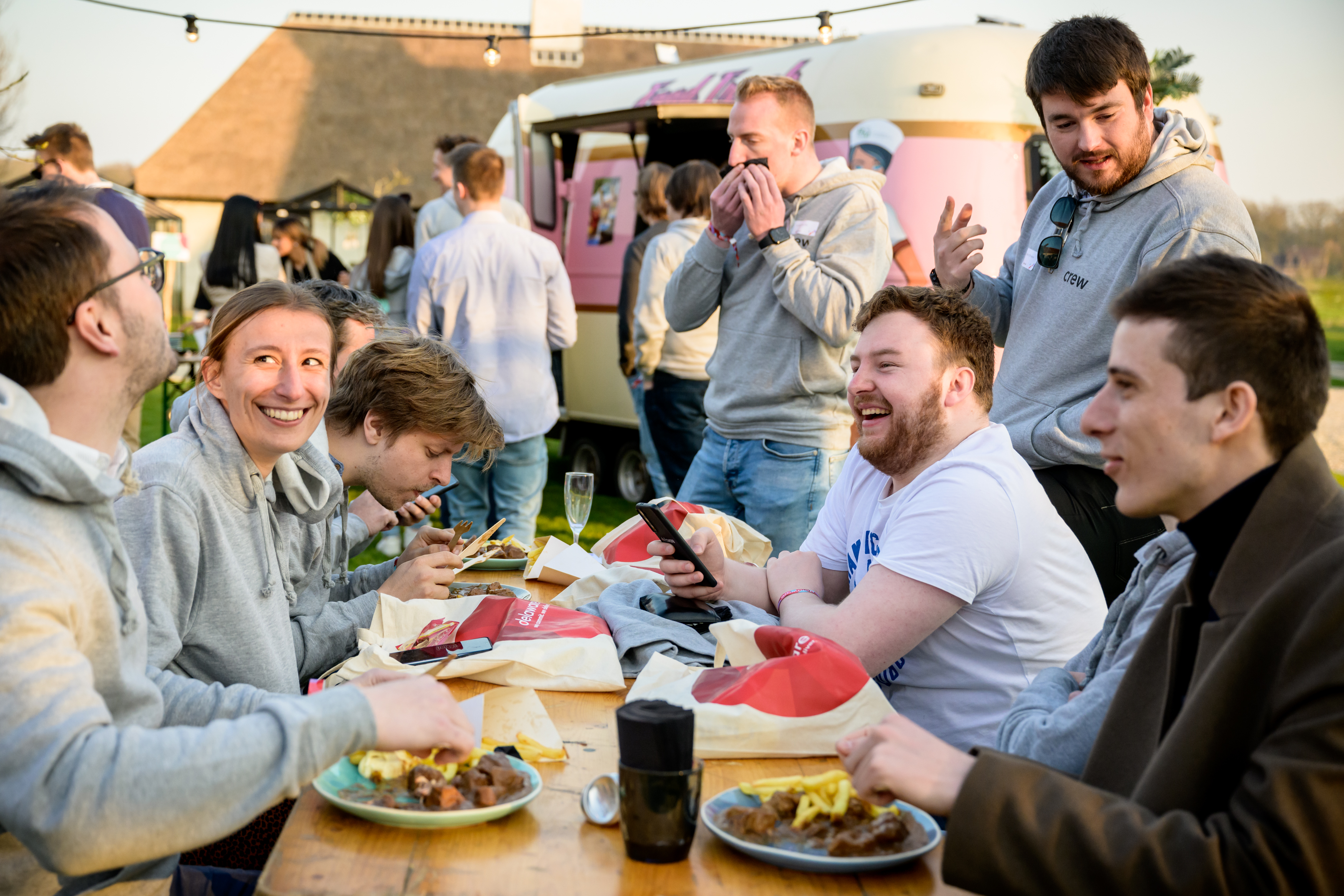 Bien entendu, il est impossible de trouver des solutions innovantes avec l'estomac vide. L'équipe de support était donc prête à soigner les participants et les coaches ! Tout d'abord, chacun a reçu un sac à surprises contenant suffisamment d'en-cas pour tenir le coup. En outre, il y avait des collations pour la soirée et le vendredi matin, bien sûr, il y avait des viennoiseries qui se sont avérées être les bienvenues, car la nuit avait été froide. Robrecht, l'un des coaches, a dormi dans sa voiture tandis que Felix de l'équipe Klub C a courageusement passé toute la nuit dans sa tente. Quel dévouement !