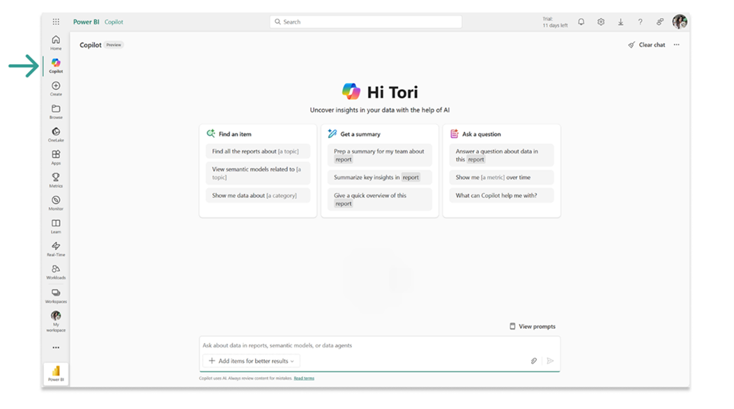 Microsoft a également introduit une option Copilot autonome dans Microsoft Power BI. Celle-ci vous permet de poser des questions sur tous les artefacts auxquels vous avez accès, et pas seulement sur celui que vous consultez actuellement. Depuis juillet, les réponses vérifiées sont incluses dans les réponses de Copilot.